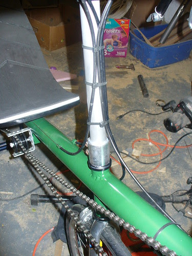 The bike is done with the exception of a couple minor things (hand grips, toeing in the front brake pads, and making a little cap for the top of the steerer extension to be specific)